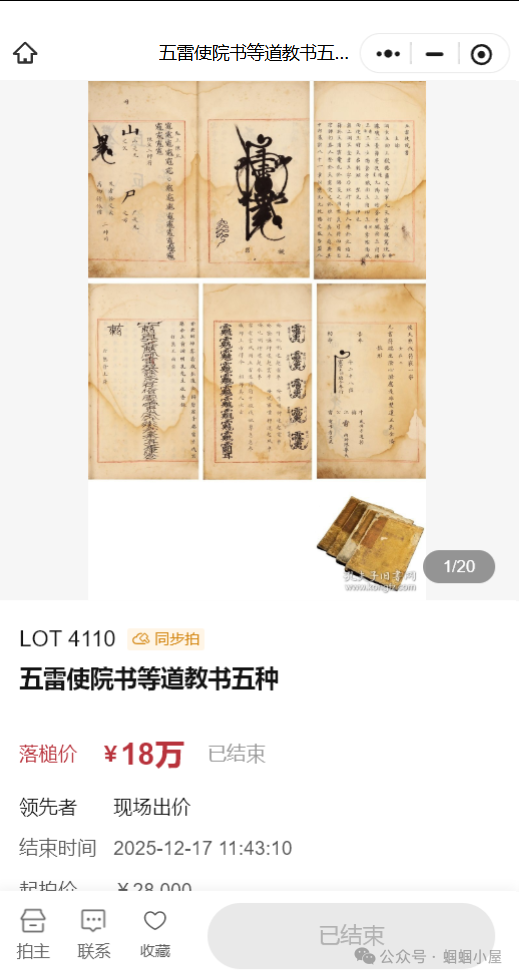 前几天拍卖会,拍出了5册雷法抄本,18万的高价。